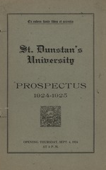 Academic Calendars of Saint Dunstan's University for the years 1886-1969. The calendars (or Prospectus and Course of Studies) contain important dates, course descriptions, information about fees, student groups, exams, and available bursaries and awards.