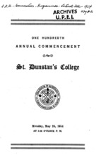 Contents: St. Dunstan's one hundred years [poem] / A. P. Campbell -- Historical sketch of St. Dunstan's College -- Historical sketch of St. Dunstan's College Coat of Arms -- The old chapel [poem] / A. P. Campbell -- Alumni directory.
