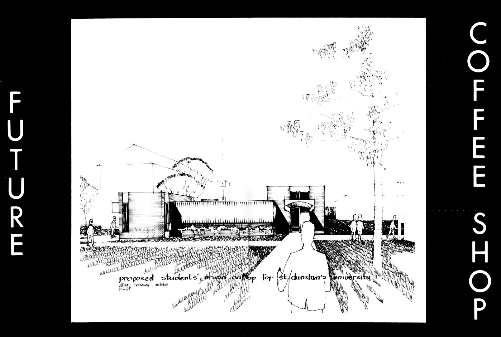 A measure of the pride many in the Class of ’64 must have felt in the gift they were leaving for future SDU students can be seen in the prominent place given to architect Alfred J. Hennessey’s rendering of the planned Coffee Shop in their yearbook. The Coffee Shop would eventually open in January of 1965. Mnemosyne 1964. p. [106-107].