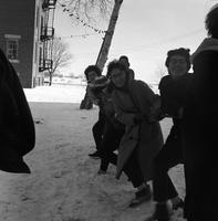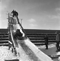 • Abstract:Students toboggan down the "bob-sled run" built atop the sports field bleachers for 1963 Winter Carnival