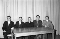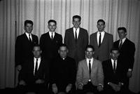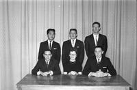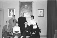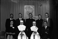 • Abstract:Participants at the Latin American Rally held on campus February 11, 1962 Seated: Marilyn Sutherland, two unidentified Sisters, Dan O'Hanley. Standing: Oscar Monteza, Ingnatius LaRusie, Fr. John McIver, Rev. Allan MacDonald, J. E. Green